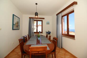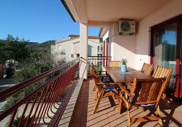 Ferienwohnung bietet Platz für 8 Gäste. Die Betten sind in Schlafzimmern, die es 3 gibt, und in Wohnzimmer, innerhalb einer Gesamtfläche von 107m2, angeordnet. Die Gäste haben eine eigene Terrasse zur Verfügung, auf der sie in warmen Sommernächten genießen können. Das Apartment bietet Meerblick. Es ist erlaubt, Speisen auf dem Gemeinschafts-Grill vorzubereiten.