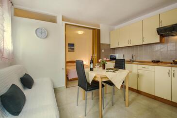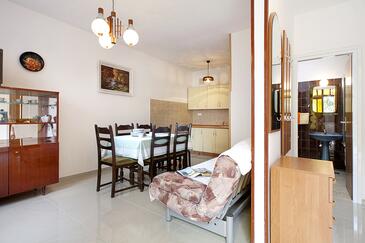 Ferienwohnung bietet Platz für 5 Gäste. Die Betten sind in Schlafzimmern, die es 2 gibt, innerhalb einer Gesamtfläche von 49m2, angeordnet. Die Gäste haben eine eigene Terrasse zur Verfügung, auf der sie in warmen Sommernächten genießen können. Das Apartment bietet Meerblick. In der Unterkunftseinheit besteht die Möglichkeit des Mitbringens von Haustieren gegen Aufpreis. Unterkunftseinheit hat Räume, die von dem Rest der Einheit abgetrennt werden.