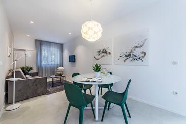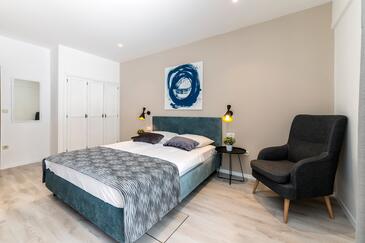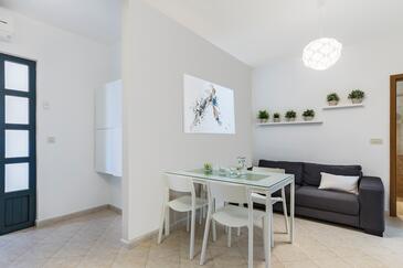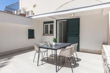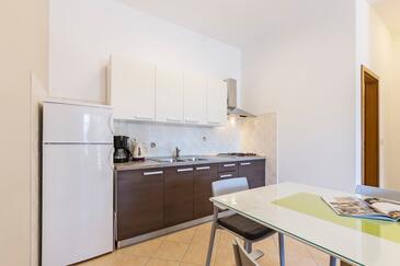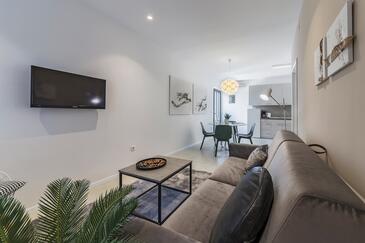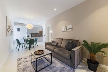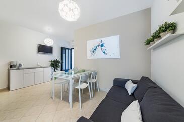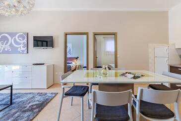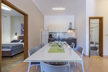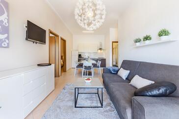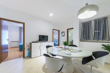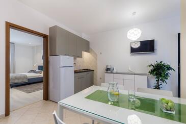 Ferienwohnung bietet Platz für 6 Gäste. Die Betten sind in Schlafzimmern, die es 3 gibt, innerhalb einer Gesamtfläche von 70m2, angeordnet. Die Gäste haben eine eigene Terrasse zur Verfügung, auf der sie in warmen Sommernächten genießen können. Das Apartment bietet Meerblick. Es ist erlaubt, Speisen auf dem Gemeinschafts-Grill vorzubereiten. In der Unterkunftseinheit besteht die Möglichkeit des Mitbringens von Haustieren gegen Aufpreis.