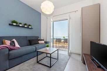 Ferienwohnung bietet Platz für 6 Gäste. Die Betten sind in Schlafzimmern, die es 3 gibt, innerhalb einer Gesamtfläche von 71m2, angeordnet. Die Gäste haben eine eigene Terrasse zur Verfügung, auf der sie in warmen Sommernächten genießen können. Das Apartment bietet Meerblick. Es ist erlaubt, Speisen auf dem Gemeinschafts-Grill vorzubereiten. In der Unterkunftseinheit besteht die Möglichkeit des Mitbringens von Haustieren gegen Aufpreis.