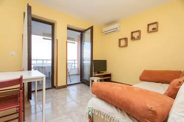 Ferienwohnung bietet Platz für 4 Gäste. Die Betten sind in Schlafzimmern, die es 1 gibt, und in Wohnzimmer, innerhalb einer Gesamtfläche von 26m2, angeordnet. Die Gäste haben eine eigene Terrasse zur Verfügung, auf der sie in warmen Sommernächten genießen können. Das Apartment bietet Meerblick.