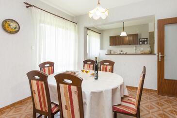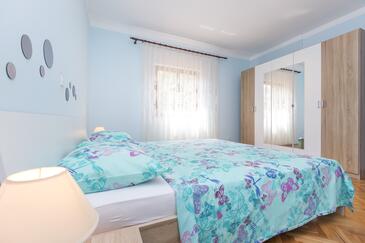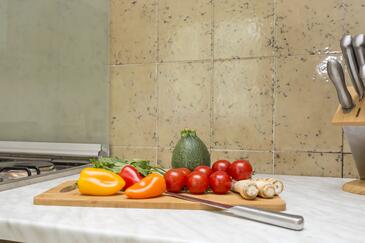 Ferienwohnung bietet Platz für 4 Gäste. Die Betten sind in Schlafzimmern, die es 2 gibt, innerhalb einer Gesamtfläche von 75m2, angeordnet. Die Gäste haben eine eigene Terrasse zur Verfügung, auf der sie in warmen Sommernächten genießen können. Es ist erlaubt, Speisen auf dem Gemeinschafts-Grill vorzubereiten.