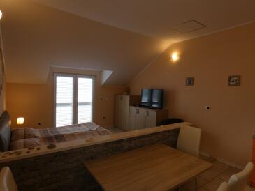 Studio bietet Platz für 2 Gäste. Die Betten sind in Schlafzimmern, die es 1 gibt, innerhalb einer Gesamtfläche von 22m2, angeordnet. Die Gäste haben eine eigene Terrasse zur Verfügung, auf der sie in warmen Sommernächten genießen können. Das Studio-Apartment bietet Meerblick. Es ist erlaubt, Speisen auf dem Gemeinschafts-Grill vorzubereiten. In der Unterkunftseinheit besteht die Möglichkeit des Mitbringens von Haustieren gegen Aufpreis.