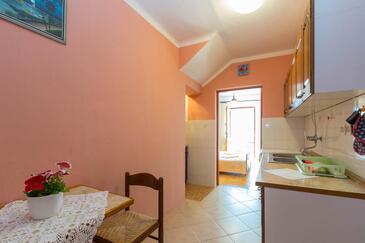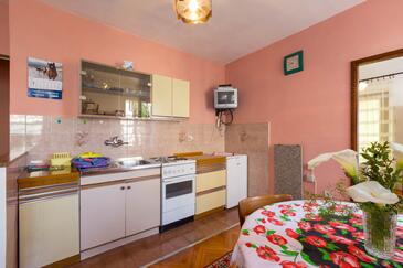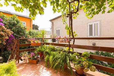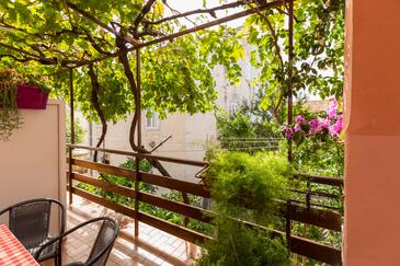 Ferienwohnung bietet Platz für 5 Gäste. Die Betten sind in Schlafzimmern, die es 2 gibt, und in Esszimmer, innerhalb einer Gesamtfläche von 49m2, angeordnet. Die Gäste haben eine eigene Terrasse zur Verfügung, auf der sie in warmen Sommernächten genießen können. Es ist erlaubt, Speisen auf dem Gemeinschafts-Grill vorzubereiten.