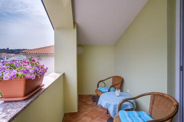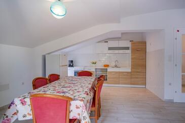 Ferienwohnung bietet Platz für 5 Gäste. Die Betten sind in Schlafzimmern, die es 3 gibt, innerhalb einer Gesamtfläche von 99m2, angeordnet. Die Gäste haben eine eigene Terrasse zur Verfügung, auf der sie in warmen Sommernächten genießen können. Es ist erlaubt, Speisen auf dem Gemeinschafts-Grill vorzubereiten. In der Unterkunftseinheit besteht die Möglichkeit des Mitbringens von Haustieren gegen Aufpreis.