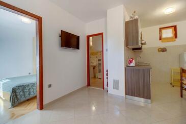 Ferienwohnung bietet Platz für 4 Gäste. Die Betten sind in Schlafzimmern, die es 2 gibt, innerhalb einer Gesamtfläche von 38m2, angeordnet. Die Gäste haben eine eigene Terrasse zur Verfügung, auf der sie in warmen Sommernächten genießen können. Es ist erlaubt, Speisen auf dem Gemeinschafts-Grill vorzubereiten.