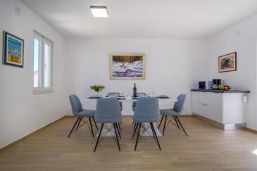 Ferienwohnung bietet Platz für 6 Gäste. Die Betten sind in Schlafzimmern, die es 3 gibt, innerhalb einer Gesamtfläche von 103m2, angeordnet. Die Gäste haben eine eigene Terrasse zur Verfügung, auf der sie in warmen Sommernächten genießen können. Für vollen Genuss und Entspannung gibt es einen privaten Grill für Gäste dieser Unterkunft.