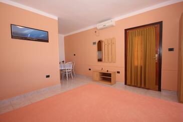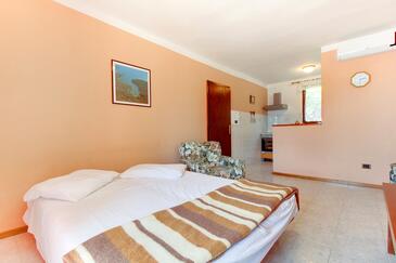 Ferienwohnung bietet Platz für 3 Gäste. Die Betten sind in Schlafzimmern, die es 1 gibt, und in Esszimmer, innerhalb einer Gesamtfläche von 25m2, angeordnet. Die Gäste haben eine eigene Terrasse zur Verfügung, auf der sie in warmen Sommernächten genießen können. Das Apartment bietet Meerblick. Es ist erlaubt, Speisen auf dem Gemeinschafts-Grill vorzubereiten. In der Unterkunftseinheit besteht die Möglichkeit des Mitbringens von Haustieren gegen Aufpreis.