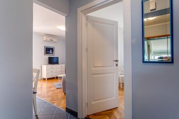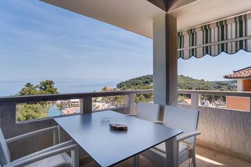 Ferienwohnung bietet Platz für 5 Gäste. Die Betten sind in Schlafzimmern, die es 2 gibt, und in Wohnzimmer, innerhalb einer Gesamtfläche von 47m2, angeordnet. Die Gäste haben eine eigene Terrasse zur Verfügung, auf der sie in warmen Sommernächten genießen können. Das Apartment bietet Meerblick. Es ist erlaubt, Speisen auf dem Gemeinschafts-Grill vorzubereiten.