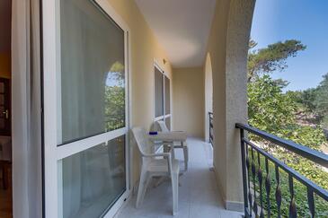Ferienwohnung bietet Platz für 4 Gäste. Die Betten sind in Schlafzimmern, die es 2 gibt, innerhalb einer Gesamtfläche von 56m2, angeordnet. Die Gäste haben einen eigenen Balkon zur Verfügung, auf der sie in warmen Sommernächten genießen können.