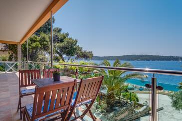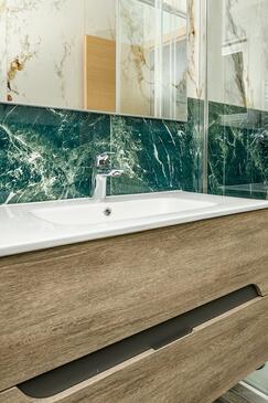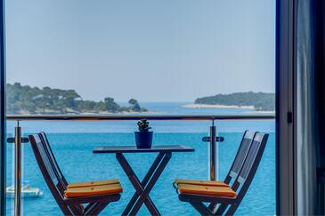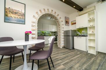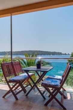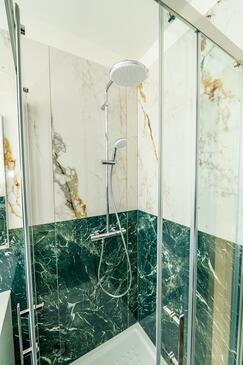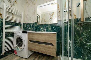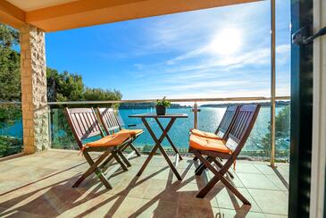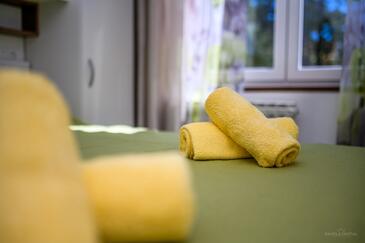 Ferienwohnung bietet Platz für 4 Gäste. Die Betten sind in Schlafzimmern, die es 2 gibt, innerhalb einer Gesamtfläche von 39m2, angeordnet. Die Gäste haben eine eigene Terrasse zur Verfügung, auf der sie in warmen Sommernächten genießen können. Das Apartment bietet Meerblick. Es ist erlaubt, Speisen auf dem Gemeinschafts-Grill vorzubereiten. In der Unterkunftseinheit besteht die Möglichkeit des Mitbringens von Haustieren gegen Aufpreis. Durch die Terrasse der gebuchten Unterkunftseinheit gehen auch andere Gäste oder Vermieter. In der gebuchten Unterkunftseinheit zahlt man am Ort ein Depositum ( der Preis ist an der Internetseite angeführt ).