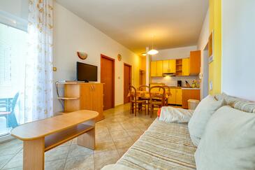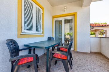 Ferienwohnung bietet Platz für 2 Gäste. Die Betten sind in Schlafzimmern, die es 1 gibt, innerhalb einer Gesamtfläche von 38m2, angeordnet. Die Gäste haben eine eigene Terrasse zur Verfügung, auf der sie in warmen Sommernächten genießen können. Das Apartment bietet Meerblick. Es ist erlaubt, Speisen auf dem Gemeinschafts-Grill vorzubereiten.