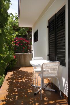 Ferienwohnung bietet Platz für 6 Gäste. Die Betten sind in Schlafzimmern, die es 2 gibt, und in Esszimmer, innerhalb einer Gesamtfläche von 79m2, angeordnet. Die Gäste haben eine eigene Terrasse zur Verfügung, auf der sie in warmen Sommernächten genießen können. Es ist erlaubt, Speisen auf dem Gemeinschafts-Grill vorzubereiten. Durch die Terrasse der gebuchten Unterkunftseinheit gehen auch andere Gäste oder Vermieter.