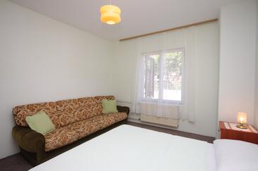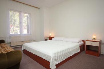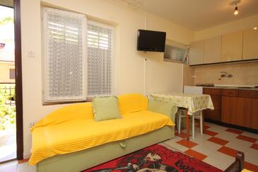 Ferienwohnung bietet Platz für 6 Gäste. Die Betten sind in Schlafzimmern, die es 2 gibt, und in Esszimmer, innerhalb einer Gesamtfläche von 79m2, angeordnet. Die Gäste haben eine eigene Terrasse zur Verfügung, auf der sie in warmen Sommernächten genießen können. Es ist erlaubt, Speisen auf dem Gemeinschafts-Grill vorzubereiten. Durch die Terrasse der gebuchten Unterkunftseinheit gehen auch andere Gäste oder Vermieter.