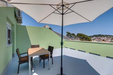 Studio bietet Platz für 2 Gäste. Die Betten sind in Schlafzimmern, die es 1 gibt, innerhalb einer Gesamtfläche von 44m2, angeordnet. Die Gäste haben eine eigene Terrasse zur Verfügung, auf der sie in warmen Sommernächten genießen können. Das Studio-Apartment bietet Meerblick.
