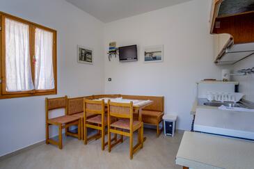 Ferienwohnung bietet Platz für 3 Gäste. Die Betten sind in Schlafzimmern, die es 1 gibt, und in Esszimmer, innerhalb einer Gesamtfläche von 29m2, angeordnet. Die Gäste haben eine eigene Terrasse zur Verfügung, auf der sie in warmen Sommernächten genießen können. Das Apartment bietet Meerblick. Es ist erlaubt, Speisen auf dem Gemeinschafts-Grill vorzubereiten. In der Unterkunftseinheit besteht die Möglichkeit des Mitbringens von Haustieren gegen Aufpreis.