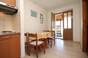 Ferienwohnung bietet Platz für 4 Gäste. Die Betten sind in Schlafzimmern, die es 2 gibt, innerhalb einer Gesamtfläche von 45m2, angeordnet. Die Gäste haben eine eigene Terrasse zur Verfügung, auf der sie in warmen Sommernächten genießen können. Für vollen Genuss und Entspannung gibt es einen privaten Grill für Gäste dieser Unterkunft.
