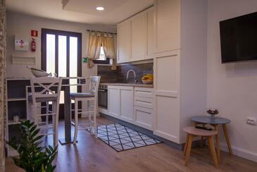 Ferienwohnung bietet Platz für 3 Gäste. Die Betten sind in Schlafzimmern, die es 1 gibt, und in Wohnzimmer, innerhalb einer Gesamtfläche von 27m2, angeordnet. Die Gäste haben eine eigene Terrasse zur Verfügung, auf der sie in warmen Sommernächten genießen können. In der Unterkunftseinheit besteht die Möglichkeit des Mitbringens von Haustieren gegen Aufpreis.