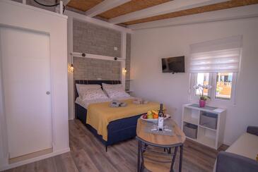 Studio bietet Platz für 2 Gäste. Die Betten sind in Schlafzimmern, die es 1 gibt, innerhalb einer Gesamtfläche von 13m2, angeordnet. Die Gäste haben eine eigene Terrasse zur Verfügung, auf der sie in warmen Sommernächten genießen können. Das Studio-Apartment bietet Meerblick.