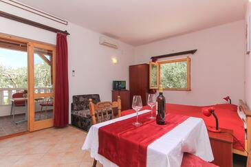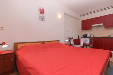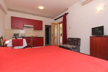 Ferienwohnung bietet Platz für 4 Gäste. Die Betten sind in Schlafzimmern, die es 1 gibt, und in Esszimmer, innerhalb einer Gesamtfläche von 37m2, angeordnet. Die Gäste haben eine eigene Terrasse zur Verfügung, auf der sie in warmen Sommernächten genießen können. Das Apartment bietet Meerblick. Es ist erlaubt, Speisen auf dem Gemeinschafts-Grill vorzubereiten. Während ihres Aufenthalts können Gäste das gemeinsam zur Nutzung stehende Schwimmbad benutzen.