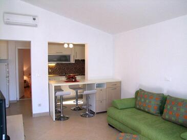 Ferienwohnung bietet Platz für 6 Gäste. Die Betten sind in Schlafzimmern, die es 2 gibt, und in Esszimmer, innerhalb einer Gesamtfläche von 52m2, angeordnet. Die Gäste haben einen eigenen Balkon zur Verfügung, auf der sie in warmen Sommernächten genießen können. Es ist erlaubt, Speisen auf dem Gemeinschafts-Grill vorzubereiten. In der Unterkunftseinheit besteht die Möglichkeit des Mitbringens von Haustieren gegen Aufpreis. Die reservierte Unterkunftseinheit verfügt über einen gemeinsame Terrasse.