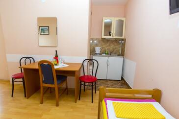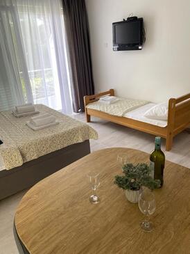 Ferienwohnung bietet Platz für 4 Gäste. Die Betten sind in Schlafzimmern, die es 1 gibt, und in Esszimmer, innerhalb einer Gesamtfläche von 39m2, angeordnet. Die Gäste haben eine eigene Terrasse zur Verfügung, auf der sie in warmen Sommernächten genießen können. Es ist erlaubt, Speisen auf dem Gemeinschafts-Grill vorzubereiten. Räume der gebuchten Unterkunftseinheit werden nicht in eine Ganze verbunden.