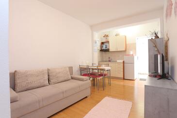 Ferienwohnung bietet Platz für 5 Gäste. Die Betten sind in Schlafzimmern, die es 1 gibt, und in Wohnzimmer, innerhalb einer Gesamtfläche von 51m2, angeordnet. Die Gäste haben eine eigene Terrasse zur Verfügung, auf der sie in warmen Sommernächten genießen können.
