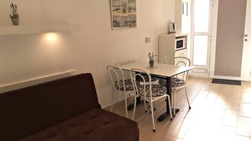 Ferienwohnung bietet Platz für 4 Gäste. Die Betten sind in Schlafzimmern, die es 1 gibt, und in Wohnzimmer, innerhalb einer Gesamtfläche von 28m2, angeordnet. Die Gäste haben einen eigenen Balkon zur Verfügung, auf der sie in warmen Sommernächten genießen können. Das Apartment bietet Meerblick.