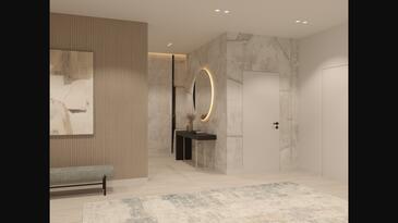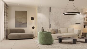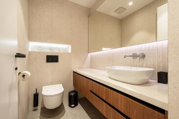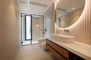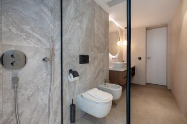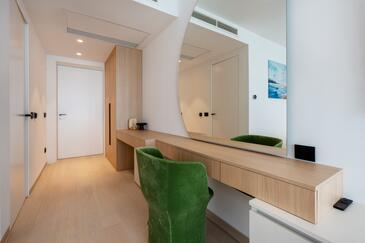 Haus bietet Platz für 8 Gäste. Die Betten sind in Schlafzimmern, die es 4 gibt, innerhalb einer Gesamtfläche von 211m2, angeordnet. Die Gäste haben eine eigene Terrasse zur Verfügung, auf der sie in warmen Sommernächten genießen können. Das Haus bietet Meerblick. Für vollen Genuss und Entspannung gibt es einen privaten Grill für Gäste dieser Unterkunft. Während ihres Aufenthalts können sich Gäste im privaten Schwimmbad entspannen. In der Unterkunftseinheit besteht die Möglichkeit des Mitbringens von Haustieren gegen Aufpreis.