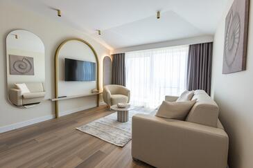 Ferienwohnung bietet Platz für 3 Gäste. Die Betten sind in Schlafzimmern, die es 1 gibt, und in Wohnzimmer, innerhalb einer Gesamtfläche von 42m2, angeordnet. Die Gäste haben eine eigene Terrasse zur Verfügung, auf der sie in warmen Sommernächten genießen können. Während ihres Aufenthalts können Gäste das gemeinsam zur Nutzung stehende Schwimmbad benutzen. Durch die Terrasse der gebuchten Unterkunftseinheit gehen auch andere Gäste oder Vermieter.