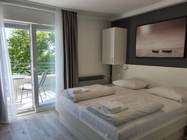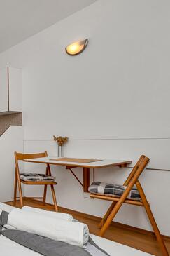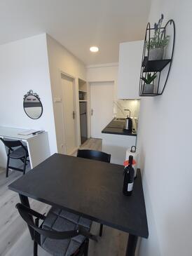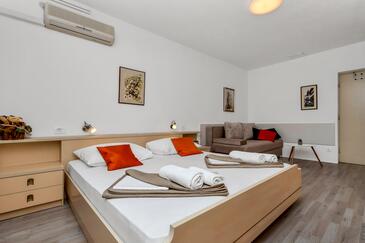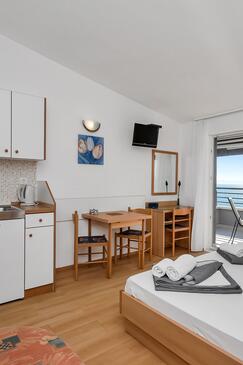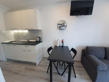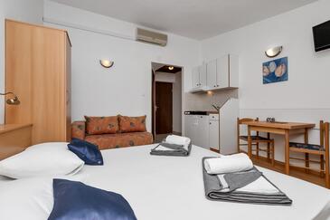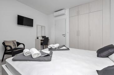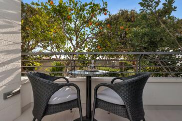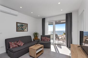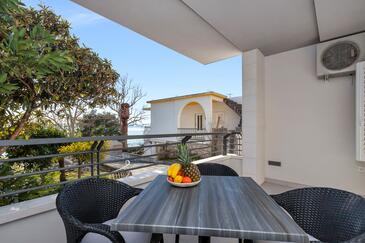 Ferienwohnung bietet Platz für 4 Gäste. Die Betten sind in Schlafzimmern, die es 1 gibt, und in Wohnzimmer, innerhalb einer Gesamtfläche von 70m2, angeordnet. Die Gäste haben eine eigene Terrasse zur Verfügung, auf der sie in warmen Sommernächten genießen können. Das Apartment bietet Meerblick. Es ist erlaubt, Speisen auf dem Gemeinschafts-Grill vorzubereiten.