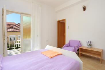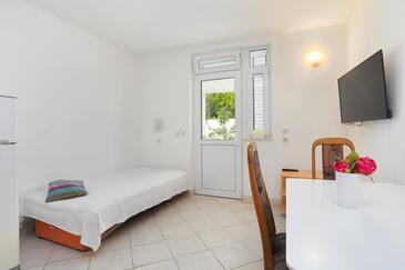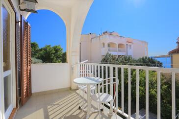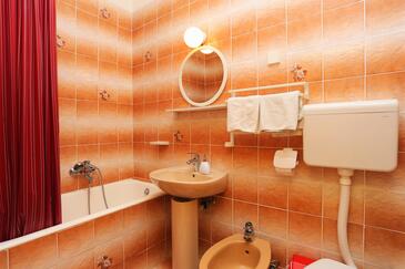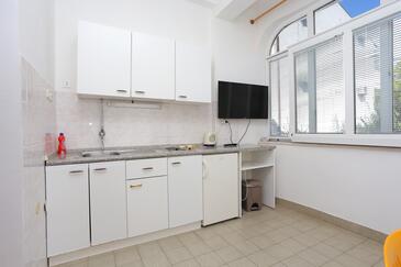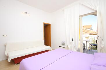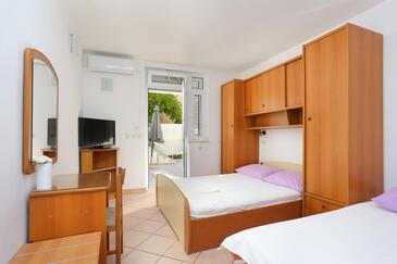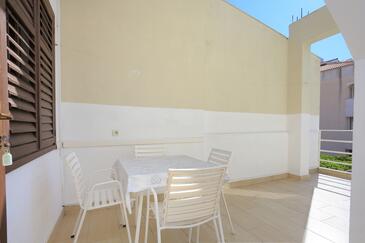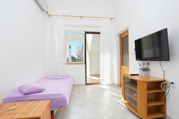 Ferienwohnung bietet Platz für 7 Gäste. Die Betten sind in Schlafzimmern, die es 2 gibt, und in Wohnzimmer, innerhalb einer Gesamtfläche von 51m2, angeordnet. Die Gäste haben eine eigene Terrasse zur Verfügung, auf der sie in warmen Sommernächten genießen können. Es ist erlaubt, Speisen auf dem Gemeinschafts-Grill vorzubereiten.