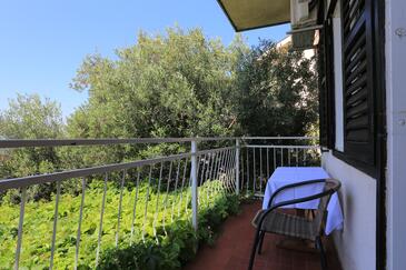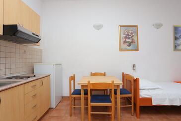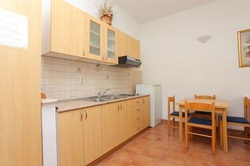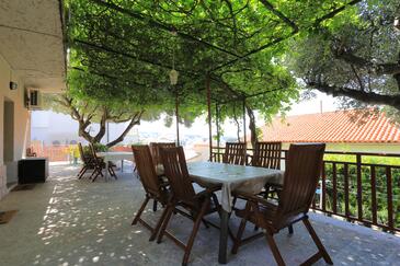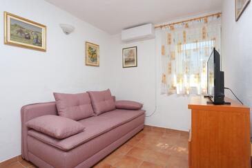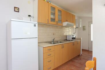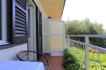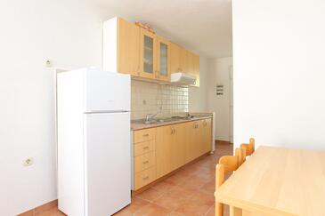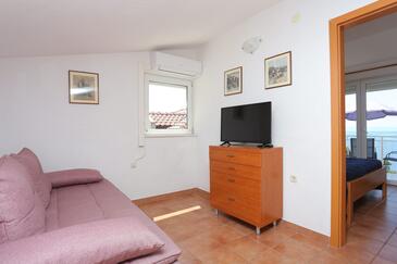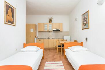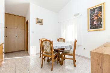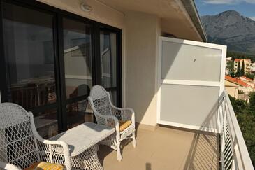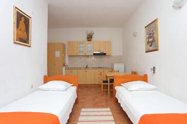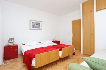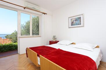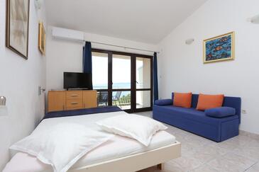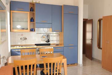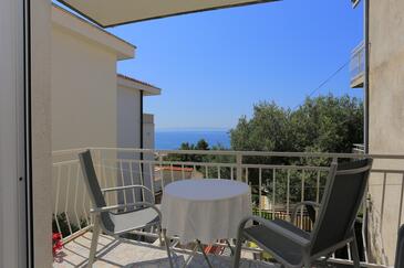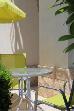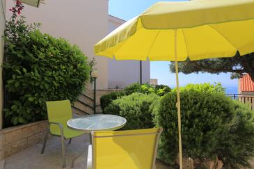 Ferienwohnung bietet Platz für 6 Gäste. Die Betten sind in Schlafzimmern, die es 2 gibt, innerhalb einer Gesamtfläche von 57m2, angeordnet. Die Gäste haben eine eigene Terrasse zur Verfügung, auf der sie in warmen Sommernächten genießen können. Das Apartment bietet Meerblick. Es ist erlaubt, Speisen auf dem Gemeinschafts-Grill vorzubereiten.