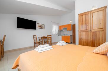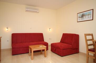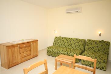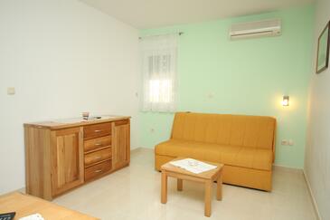 Ferienwohnung bietet Platz für 4 Gäste. Die Betten sind in Schlafzimmern, die es 1 gibt, und in Wohnzimmer, innerhalb einer Gesamtfläche von 37m2, angeordnet. Die Gäste haben einen eigenen Balkon zur Verfügung, auf der sie in warmen Sommernächten genießen können. Das Apartment bietet Meerblick. Es ist erlaubt, Speisen auf dem Gemeinschafts-Grill vorzubereiten.