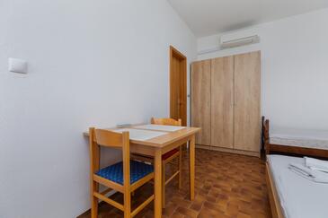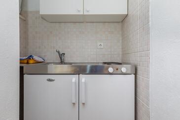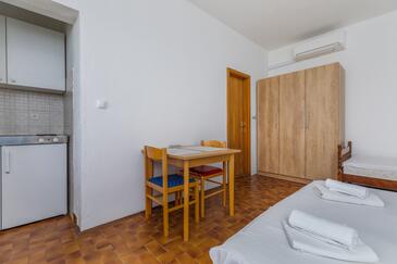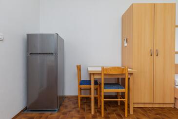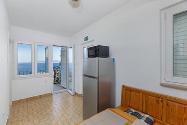 Ferienwohnung bietet Platz für 2 Gäste. Die Betten sind in Schlafzimmern, die es 1 gibt, innerhalb einer Gesamtfläche von 32m2, angeordnet. Die Gäste haben eine eigene Terrasse zur Verfügung, auf der sie in warmen Sommernächten genießen können. Das Apartment bietet Meerblick. Es ist erlaubt, Speisen auf dem Gemeinschafts-Grill vorzubereiten.