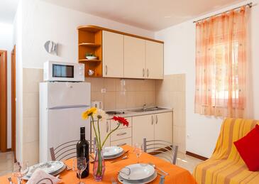 Ferienwohnung bietet Platz für 4 Gäste. Die Betten sind in Schlafzimmern, die es 1 gibt, und in Wohnzimmer, innerhalb einer Gesamtfläche von 41m2, angeordnet. Die Gäste haben eine eigene Terrasse zur Verfügung, auf der sie in warmen Sommernächten genießen können.