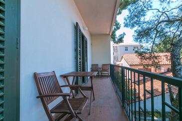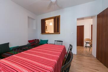 Ferienwohnung bietet Platz für 6 Gäste. Die Betten sind in Schlafzimmern, die es 2 gibt, und in Wohnzimmer, innerhalb einer Gesamtfläche von 64m2, angeordnet. Die Gäste haben einen eigenen Balkon zur Verfügung, auf der sie in warmen Sommernächten genießen können. Das Apartment bietet Meerblick. Es ist erlaubt, Speisen auf dem Gemeinschafts-Grill vorzubereiten.