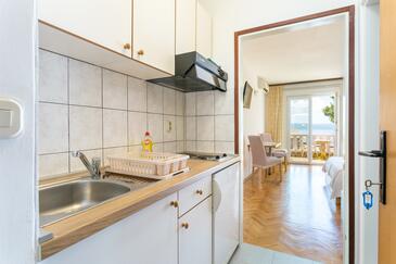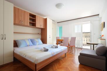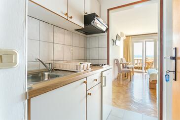 Ferienwohnung bietet Platz für 5 Gäste. Die Betten sind in Schlafzimmern, die es 1 gibt, und in Wohnzimmer, innerhalb einer Gesamtfläche von 39m2, angeordnet. Die Gäste haben einen eigenen Balkon zur Verfügung, auf der sie in warmen Sommernächten genießen können. Das Apartment bietet Meerblick. Die reservierte Unterkunftseinheit verfügt über einen gemeinsame Terrasse.
