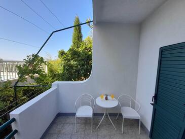 Ferienwohnung bietet Platz für 8 Gäste. Die Betten sind in Schlafzimmern, die es 2 gibt, und in Wohnzimmer, innerhalb einer Gesamtfläche von 87m2, angeordnet. Die Gäste haben eine eigene Terrasse zur Verfügung, auf der sie in warmen Sommernächten genießen können. Es ist erlaubt, Speisen auf dem Gemeinschafts-Grill vorzubereiten.