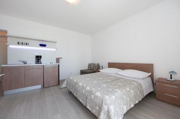 Ferienwohnung bietet Platz für 4 Gäste. Die Betten sind in Schlafzimmern, die es 1 gibt, und in Esszimmer, innerhalb einer Gesamtfläche von 30m2, angeordnet. Die Gäste haben eine eigene Terrasse zur Verfügung, auf der sie in warmen Sommernächten genießen können. Das Apartment bietet Meerblick.