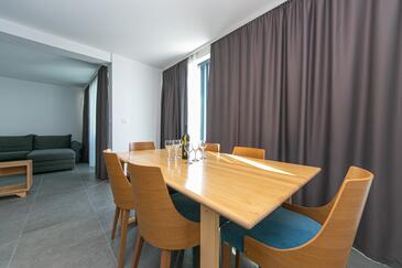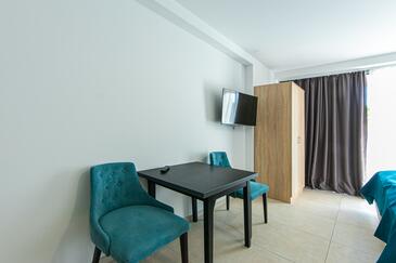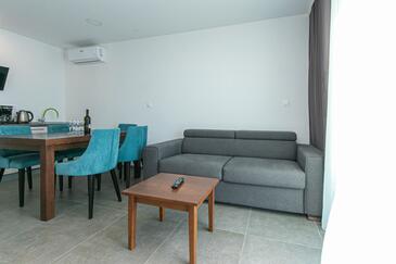 Ferienwohnung bietet Platz für 4 Gäste. Die Betten sind in Schlafzimmern, die es 2 gibt, innerhalb einer Gesamtfläche von 62m2, angeordnet. Die Gäste haben eine eigene Terrasse zur Verfügung, auf der sie in warmen Sommernächten genießen können. Das Apartment bietet Meerblick. Während ihres Aufenthalts können Gäste das gemeinsam zur Nutzung stehende Schwimmbad benutzen.