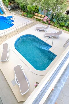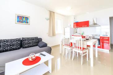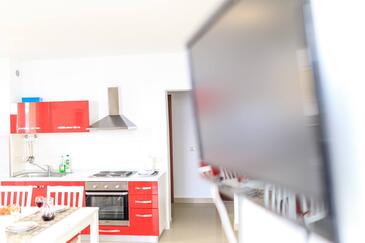 Ferienwohnung bietet Platz für 4 Gäste. Die Betten sind in Schlafzimmern, die es 2 gibt, innerhalb einer Gesamtfläche von 50m2, angeordnet. Die Gäste haben eine eigene Terrasse zur Verfügung, auf der sie in warmen Sommernächten genießen können. Das Apartment bietet Meerblick. Während ihres Aufenthalts können Gäste das gemeinsam zur Nutzung stehende Schwimmbad benutzen.