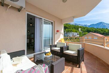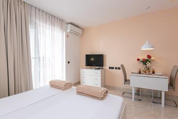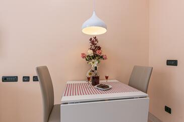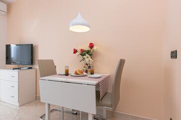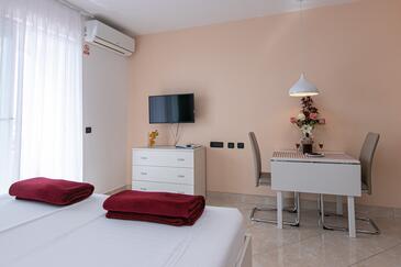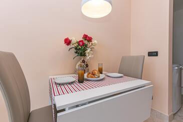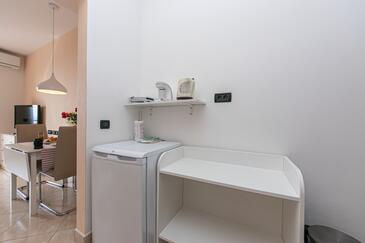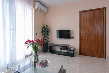 Ferienwohnung bietet Platz für 4 Gäste. Die Betten sind in Schlafzimmern, die es 2 gibt, innerhalb einer Gesamtfläche von 50m2, angeordnet. Die Gäste haben eine eigene Terrasse zur Verfügung, auf der sie in warmen Sommernächten genießen können. Das Apartment bietet Meerblick. Es ist erlaubt, Speisen auf dem Gemeinschafts-Grill vorzubereiten. Während ihres Aufenthalts können Gäste das gemeinsam zur Nutzung stehende Schwimmbad benutzen. In der Unterkunftseinheit besteht die Möglichkeit des Mitbringens von Haustieren gegen Aufpreis.