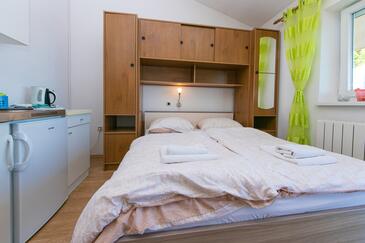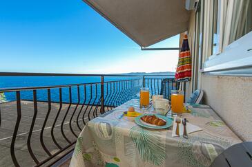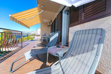 Ferienwohnung bietet Platz für 6 Gäste. Die Betten sind in Schlafzimmern, die es 3 gibt, innerhalb einer Gesamtfläche von 79m2, angeordnet. Die Gäste haben eine eigene Terrasse zur Verfügung, auf der sie in warmen Sommernächten genießen können. Das Apartment bietet Meerblick.