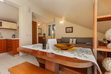 Ferienwohnung bietet Platz für 2 Gäste. Die Betten sind in Schlafzimmern, die es 1 gibt, innerhalb einer Gesamtfläche von 38m2, angeordnet. Die Gäste haben einen eigenen Balkon zur Verfügung, auf der sie in warmen Sommernächten genießen können. Das Apartment bietet Meerblick.