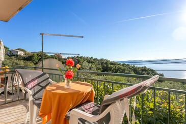 Ferienwohnung bietet Platz für 4 Gäste. Die Betten sind in Schlafzimmern, die es 2 gibt, innerhalb einer Gesamtfläche von 48m2, angeordnet. Die Gäste haben einen eigenen Balkon zur Verfügung, auf der sie in warmen Sommernächten genießen können. Das Apartment bietet Meerblick. Es ist erlaubt, Speisen auf dem Gemeinschafts-Grill vorzubereiten.