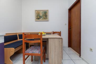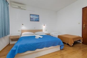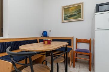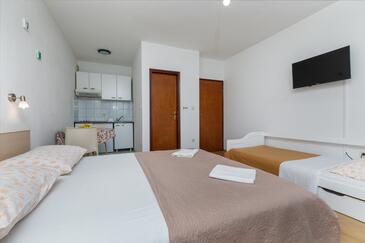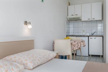 Ferienwohnung bietet Platz für 6 Gäste. Die Betten sind in Schlafzimmern, die es 2 gibt, innerhalb einer Gesamtfläche von 43m2, angeordnet. Die Gäste haben einen eigenen Balkon zur Verfügung, auf der sie in warmen Sommernächten genießen können. Das Apartment bietet Meerblick. Es ist erlaubt, Speisen auf dem Gemeinschafts-Grill vorzubereiten.