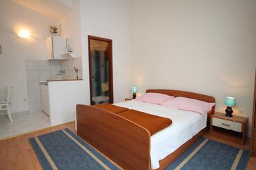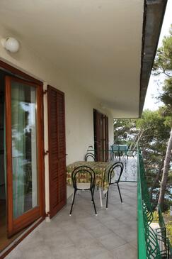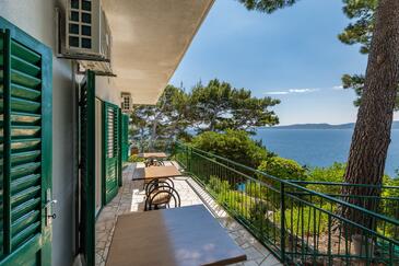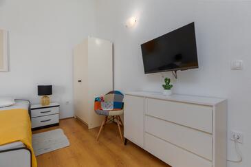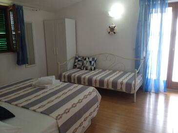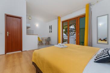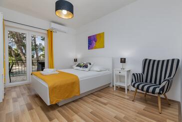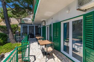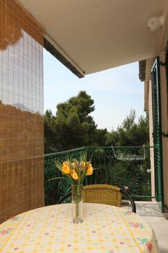 Ferienwohnung bietet Platz für 6 Gäste. Die Betten sind in Schlafzimmern, die es 3 gibt, innerhalb einer Gesamtfläche von 68m2, angeordnet. Die Gäste haben einen eigenen Balkon zur Verfügung, auf der sie in warmen Sommernächten genießen können. Das Apartment bietet Meerblick. Es ist erlaubt, Speisen auf dem Gemeinschafts-Grill vorzubereiten.