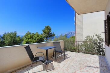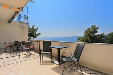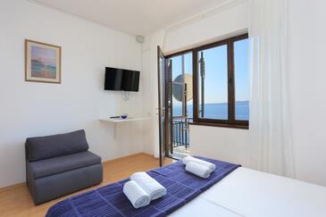 Ferienwohnung bietet Platz für 8 Gäste. Die Betten sind in Schlafzimmern, die es 3 gibt, innerhalb einer Gesamtfläche von 68m2, angeordnet. Die Gäste haben eine eigene Terrasse zur Verfügung, auf der sie in warmen Sommernächten genießen können. Das Apartment bietet Meerblick. Es ist erlaubt, Speisen auf dem Gemeinschafts-Grill vorzubereiten.