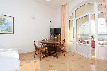 Ferienwohnung bietet Platz für 3 Gäste. Die Betten sind in Schlafzimmern, die es 1 gibt, und in Esszimmer, innerhalb einer Gesamtfläche von 33m2, angeordnet. Die Gäste haben eine eigene Terrasse zur Verfügung, auf der sie in warmen Sommernächten genießen können. Das Apartment bietet Meerblick. In der Unterkunftseinheit besteht die Möglichkeit des Mitbringens von Haustieren, und die Dienstleistung ist im Preis der Unterkunft enthalten.